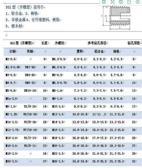5、我公司有多种型号和规格的自攻螺套可供用户选择。